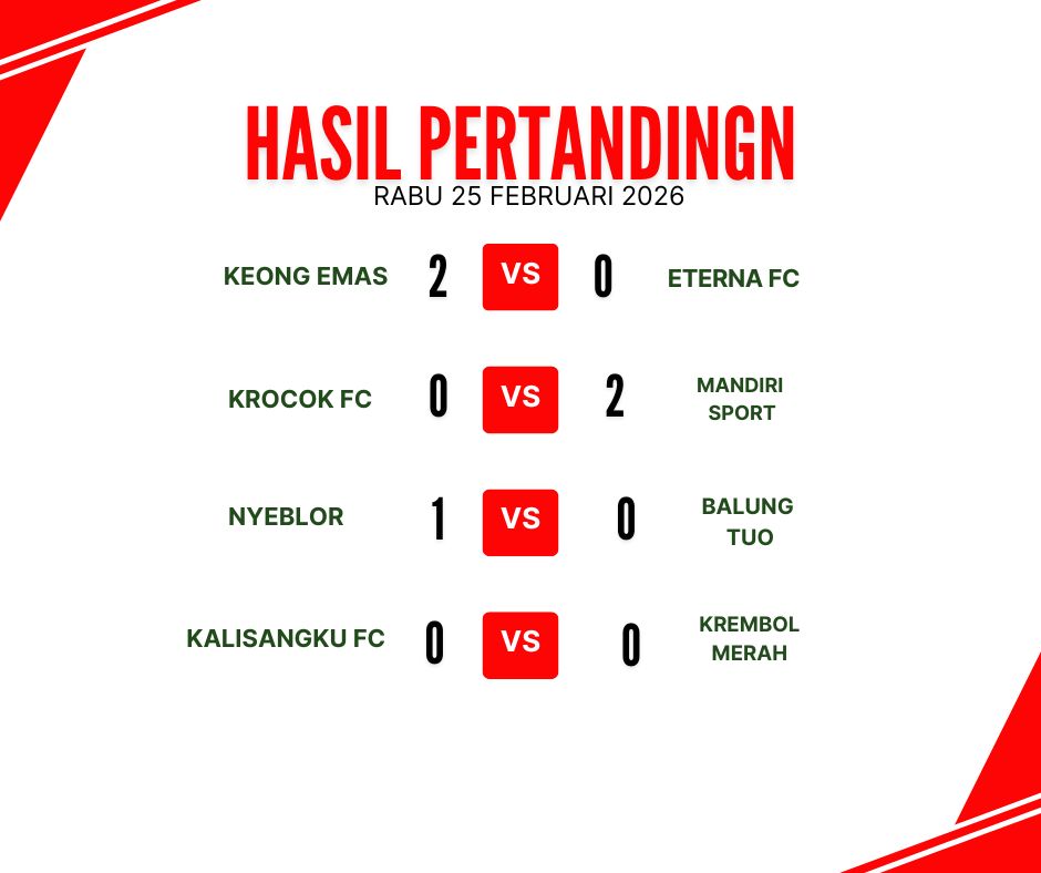 Hasil Pertandingan Rabu, 25 Februari 2026: