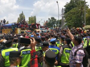 “Jika sampai tanggal 10 belum ada respon, maka kami akan berangkat ke Jakarta untuk menggeruduk kantor pusat,” ujar salah satu orator dengan tegas di hadapan massa.