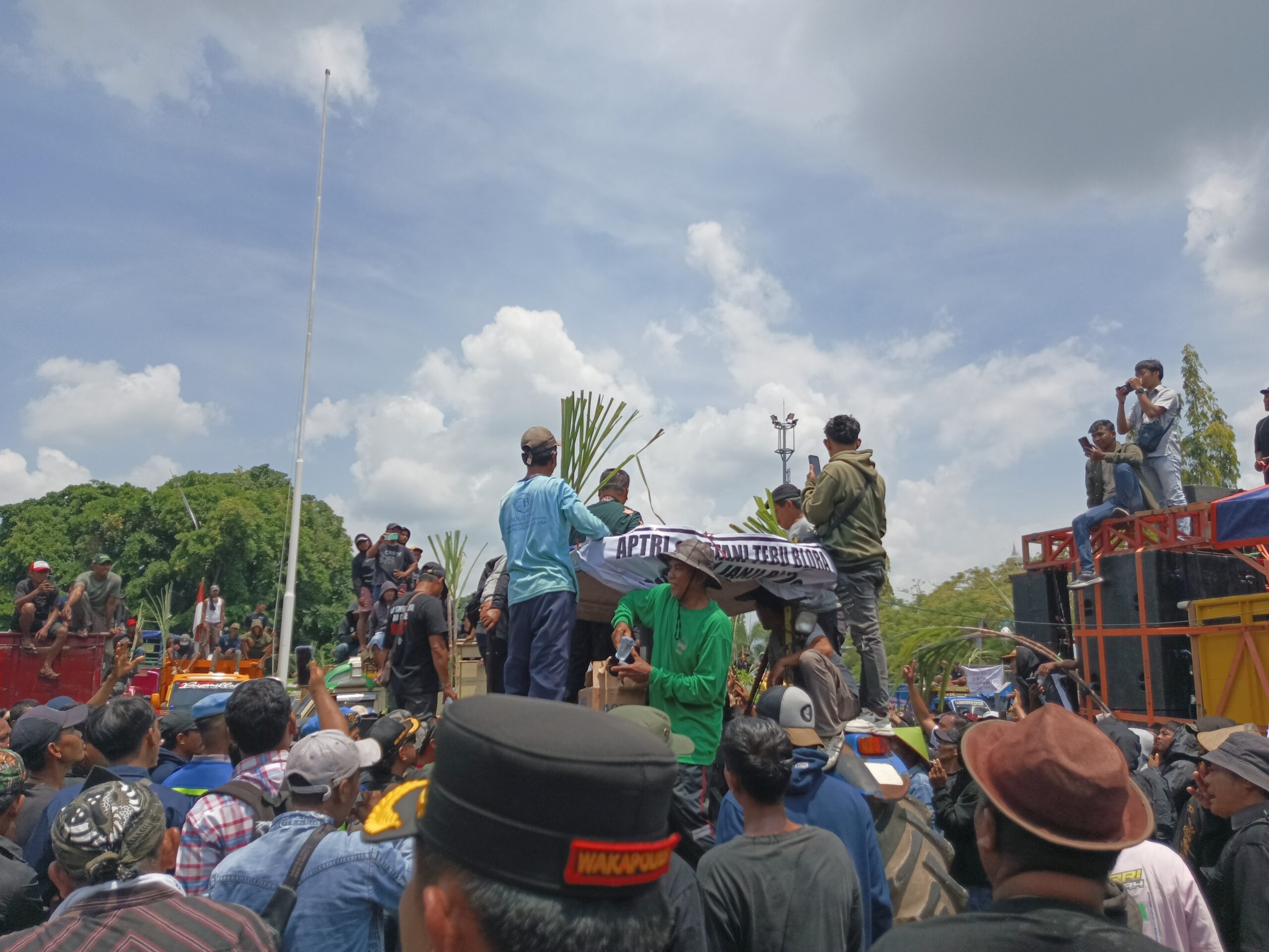 MOMENTUM NEWS–BLORA,Ratusan petani tebu menggelar aksi demonstrasi di Alun-alun Kota Blora, Kamis (2/4), menuntut perbaikan mesin giling di Pabrik Gula Gendhis Multi Manis (GMM) yang berlokasi di Desa Tinapan, Kecamatan Todanan. Aksi ini dilatarbelakangi oleh kekhawatiran petani atas banyaknya hasil panen tebu yang tidak terserap secara optimal akibat kendala operasional pabrik.